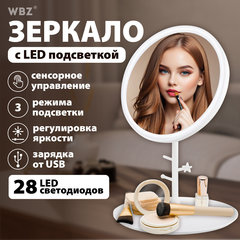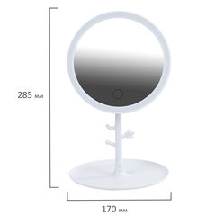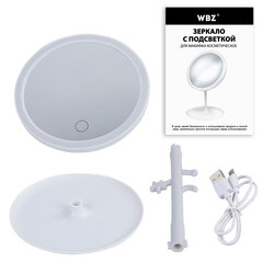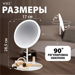 Зеркало настольное с LED-подсветкой для макияжа, диаметр 17 см, 3 режима свечения, аккумулятор 1200 mAh, цвет белый, WBZ (ВБЗ), 609330