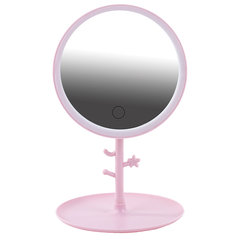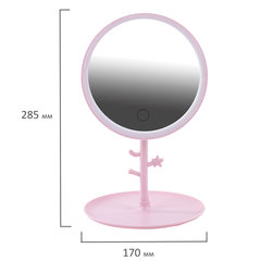 Зеркало настольное с LED-подсветкой для макияжа, диаметр 17 см, 3 режима свечения, аккумулятор 1200 mAh, цвет розовый, WBZ (ВБЗ), 609331