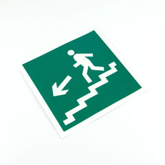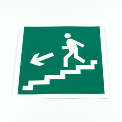 Комплект знаков "Направление к эвакуационному выходу по лестнице вниз, налево" изготовлен в соответствии c ГОСТ, отраслевыми нормами, правилами и инструкциями.Эвакуационный знак "Направление к эвакуационному выходу по лестнице вниз, налево" применяется в качестве пиктограммы (наклейки) для световых эвакуационных указателей. Знак предназначен для размещения на лестничных площадках, а также стенах, прилегающих к лестничному маршу. Эвакуационный знак изготовлен на белой самоклеящейся пленке.
