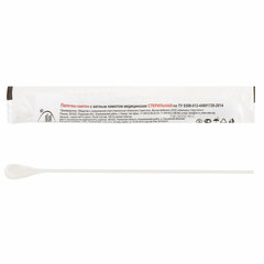Диаметр аппликатора: 2 мм, Диаметр головки: 10 мм, Длина: 150 мм, Материал аппликатора: пластик, Материал головки: хлопок, Стерильный: да, Индивидуальная упаковка: да.