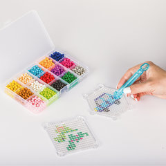 Как играть: 1. Выберите понравившийся рисунок и поместите его под прозрачную подставку-трафарет. 2. Набирайте бусины нужных цветов в специальную ручку и выкладывайте их на трафарет, нажав на кнопку внизу ручки. Обратная сторона ручки оснащена специальной ложечкой, которая позволяет набирать по несколько бусин сразу! 3. Продолжайте выкладывать бусины различных цветов по трафарету, пока не закончите рисунок. 4. Наберите в бутылочку обычной воды и побрызгайте на фигурку водой. 5. Подождите 20-60 минут (в зависимости от количества воды, сложности фигурки). 6. Снимите готовую игрушку с подставки! Получившаяся игрушка достаточно крепкая, в неё можно играть или подарить друзьям.