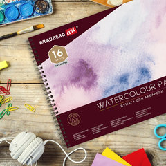 Альбом для акварели, бумага 300 г/м2, 270х390 мм, среднее зерно, 16 листов, гребень, BRAUBERG ART PREMIERE, 113213