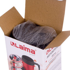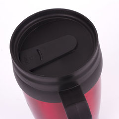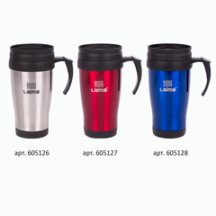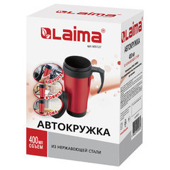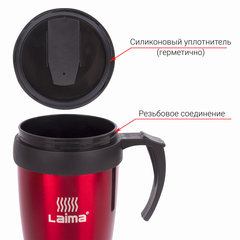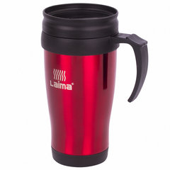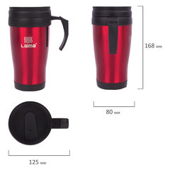 Автокружка 400 мл, термостакан с ручкой, винтовая крышка-клапан, пластик/сталь, красная, LAIMA, 605127