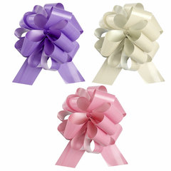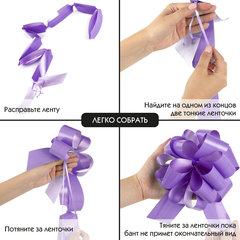 Банты поставляются в разобранном виде. Для того, чтобы собрать бант, необходимо расправить ленту, найти на одном из концов ленты две тонкие ленточки и тянуть за них, пока бант не примет свой окончательный вид.