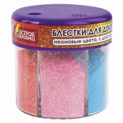 Блестки (глиттер) для декора, поделок, DIY, творчества, оформления, ОСТРОВ СОКРОВИЩ, НЕОН, диспенсер с дозатором, 6 цветов по 10 г, 662223