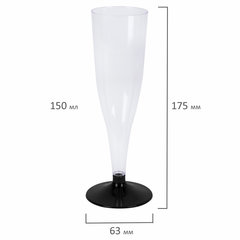 Бокал одноразовый 150 мл для шампанского "Флюте" пластиковый, черная низкая ножка, ВЗЛП, 1009П/Ч