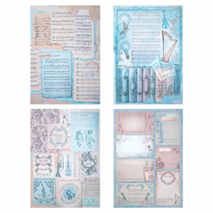 В набор входят 12 листов двусторонней бумаги плотностью 240 г/м2, содержащих 12 вариантов дизайна: 10 фоновых дизайнов и 2 набора с фигурными вырубками для вырезания. Стандартный размер бумаги (15х21 см) делает её удобной для использования в создании скрап-альбомов. Матовая бумага отличается высоким качеством печати.