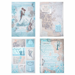 Стиль "Нотная Гамма" содержит спокойные дизайны в бежево-голубых тонах и прекрасно подойдёт для создания фотоальбомов, блокнотов для записей и других изделий.