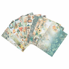 В набор входят 12 листов двусторонней бумаги плотностью 240 г/м2, содержащих 12 вариантов дизайна: 10 фоновых дизайнов и 2 набора с фигурными вырубками для вырезания. Стандартный размер бумаги (15х21 см) делает её удобной для использования в создании скрап-альбомов. Матовая бумага отличается высоким качеством печати.