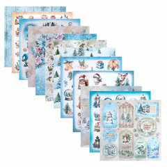 В набор входят 12 листов двусторонней бумаги плотностью 180 г/м2, содержащих 12 вариантов дизайна: 10 фоновых дизайнов и 2 набора с фигурными вырубками для вырезания. Стандартный размер бумаги 30х30 см делает ее удобной для использования в создании скрап-альбомов. Матовая бумага отличается высоким качеством печати.