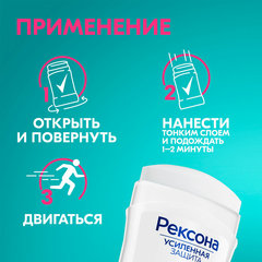 Дезодорант-антиперспирант карандаш РЕКСОНА "Без запаха" надежно защитит вас от пота и запаха в течение 72 часов.Сразу после освежающего душа далее воспользуйтесь антиперспирантом-карандашом РЕКСОНА "Без запаха". Новая революционная технология Motionsense активируется при движении, сохраняя свежесть и абсолютный комфорт на весь день. Микрочастицы создают дышащую микропленку для надежной защиты от пота и запаха. Потовые железы блокируются частично, кожа при этом дышит. Больше движений – больше уверенности! Не требует повторного нанесения в течение дня.
