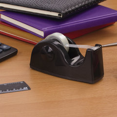 Тип диспенсера: настольный, Максимальная ширина ленты: 20 мм, Цвет: черный, Диаметр сердечника ленты: 25 мм, Особенности: основание с нескользящим покрытием, Материал диспенсера: пластик, Длина: 118 мм, Ширина: 50 мм, Высота: 50 мм, Упаковка: картонная коробка.
