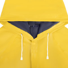 Упаковка – прозрачный пакет с евро-подвесом. Размер: 50-56 (XL), Серия: куртка-дождевик, Материал: ПВХ, Рост: 170-185 см, Длина: 90 см, Ширина: 70 см, Тип застежки: кнопки, С карманами: да, Защитные свойства: Вн, Соответствует требованиям ГОСТа: нет, Цвет: желтый. Код: 610939