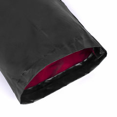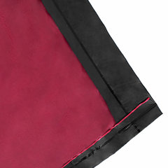 Длина по спинке (от воротника до нижнего края) – 122 см. Полуобхват груди (измеренный на уровне глубины проймы) – 70 см. Длина рукава (от воротника до края) – 86 см. Полуобхват рукава – от 26 см до 20 см. Размеры капюшона (в сложенном виде) – высота 36 см, глубина 26 см. Цвет верха – черный. Цвет внутренней части – темно-красный.