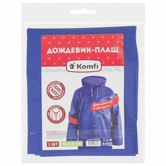 Дождевик-плащ синий на кнопках, EVA, многоразовый, прочный, универсальный размер, Komfi, 23319