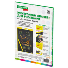 Электронный планшет BRAUBERG KIDS для рисования позволяет развивать талант юным художникам. Рисовать на планшете с жидкокристаллическим дисплеем нужно при помощи специального стилуса с пластиковым наконечником. Изображение получается очень ярким.Электронный планшет для рисования – отличная альтернатива традиционным блокнотам и альбомам. Устройство в желтом корпусе имеет 10-дюймовый LCD-экран (размер экрана 147х197 мм), который обеспечивает долгий срок службы. Работа планшета осуществляется с помощью ручки, которая функционирует от батареек (в комплект входит CR 2025). Такой планшет позволяет детям рисовать и одновременно развивать навыки счета, делать записи, а также помогает экономить бумагу.