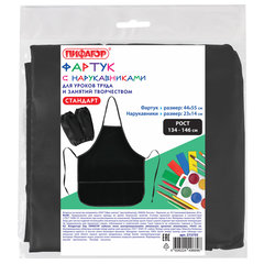 Фартук с нарукавниками для уроков труда ПИФАГОР, 3 кармана, стандартный размер, 44x55 см, черный, 273755