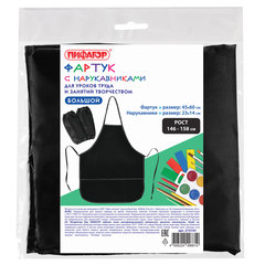 Фартук с нарукавниками для уроков труда ПИФАГОР, 3 кармана, увеличенный размер, 45x60 см, черный, 273747