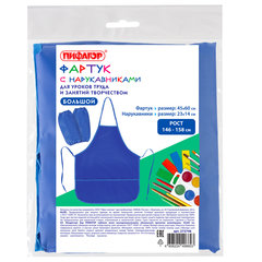 Фартук с нарукавниками для уроков труда ПИФАГОР – незаменимая вещь для защиты одежды во время уроков труда и занятий творчеством в школе, детском саду и дома. Предусмотрен для многоразового использования.Фартук и нарукавники изготовлены из водоотталкивающего полиэстера. Увеличенный размер фартука – 60х45 см, размер нарукавников – 23х14 см. Крепление фартука на завязках. Кроме того, фартук оснащен 3 карманами для канцелярии и прочих принадлежностей, которые всегда должны быть под рукой во время уроков труда и занятий творчеством.