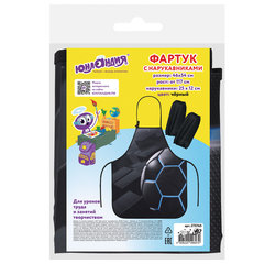 Фартук с нарукавниками для уроков труда ЮНЛАНДИЯ – незаменимая вещь для защиты одежды во время уроков труда и занятий творчеством в школе, детском саду и дома. Предусмотрен для многоразового использования.Фартук и нарукавники изготовлены из водоотталкивающего полиэстера. Стандартный размер фартука – 54х46 см, размер нарукавников – 25х12 см. Сверху завязки оснащены металлическим ушком для регулировки фартука по росту ребенка, подходит детям разных возрастов ростом от 117 см.