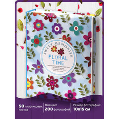 Тип листов: полипропиленовые листы с карманами, Макс. количество фотографий: 200 шт, Размер фотографий: 10х15 см, Тип обложки: твердая, Базовый цвет обложки: разноцветный, Дизайн: Цветочки, Количество листов: 50 шт., Размер листа: 17,5х22 см, Скрепление страниц: термосварка, Цвет страниц: белый, Высота альбома: 23 см, Ширина альбома: 18 см, Ширина корешка: 5 см, Упаковка: воздушно-пузырчатый пакет.
