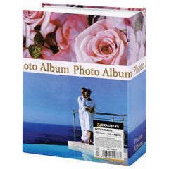 Фотоальбом BRAUBERG на 304 фотографии 10х15 см, твердая обложка, "Романтика", голубой с розовым, 390675