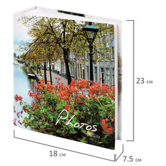Фотоальбом BRAUBERG "Променад" станет настоящей коллекцией памятных дат и событий, а также отличным подарком.Состоит из 76 полипропиленовых листов размером 17,5х22 см с карманами и вмещает 304 фотографии размером 10х15 см по 2 штуки на странице. Обложка фотоальбома выполнена в голубых, красных и зеленых тонах с изображением городского пейзажа, а его листы склеены в единый блок. Размер альбома - 18х23 см. Упакован в термоусадку и дополнительно в воздушно-пузырчатый пакет, который защитит фотоальбом от любых повреждений во время транспортировки.