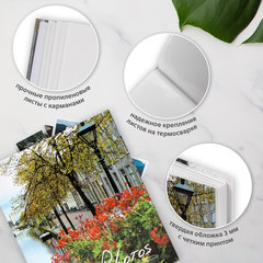 Тип листов: полипропиленовые листы с карманами, Макс. количество фотографий: 304 шт, Размер фотографий: 10х15 см, Тип обложки: твердая, Базовый цвет обложки: разноцветный, Дизайн: Променад, Количество листов: 76 шт., Размер листа: 17,5х22 см, Скрепление страниц: термосварка, Цвет страниц: белый, Высота альбома: 23 см, Ширина альбома: 18 см, Ширина корешка: 7.5 см, Упаковка: воздушно-пузырчатый пакет.
