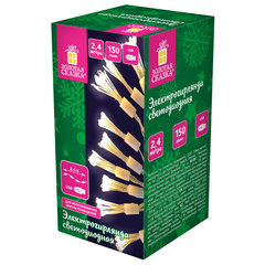 Светодиодная гирлянда ЗОЛОТАЯ СКАЗКА – это яркий, красочный и эффектный спутник любого праздничного события. Мягкий и вместе с тем насыщенный свет этого украшения позволит создать магическую и праздничную атмосферу внутри помещений.Электрическая светодиодная гирлянда представляет собой светодиоды, соединенные между собой электрическим проводом. Тип конструкции – "Нить". Длина рабочей части гирлянды составляет 2,4 м. Светодиодные лампы представлены в виде "пучков со светодиодами на кончиках" – 10 шт ( общее количество ламп - 150 ламп/15 ламп на каждом пучке). Сделаны на основе технологии LED, которая является более безопасной и эффективной по сравнению с лампой накаливания.