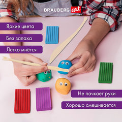 Глина полимерная запекаемая BRAUBERG ART DEBUT предназначена для лепки и моделирования, создания игрушек, украшений, предметов интерьера, сувениров.Набор включает в себя 24 бруска (по 20 г) полимерной глины разного цвета, 5 пластиковых стеков, комплект аксессуаров для создания поделок и Инструкцию по эксплуатации. Глина ярких и насыщенных цветов, не пачкает и не сушит руки, легко смывается с рук и рабочей поверхности водой или влажными салфетками.