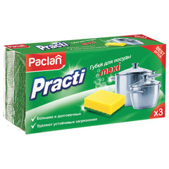 Губки бытовые для мытья посуды, КОМПЛЕКТ 3 шт., чистящий слой (абразив), PACLAN "Practi Maxi", 409121