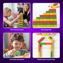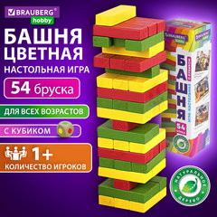 Настольная игра BRAUBERG HOBBY "Цветная башня" – хороший способ весело и интересно провести время в кругу семьи или друзей. Подходит как для семейных вечеров, так и для больших и шумных компаний.Настольная игра "Цветная башня" включает в себя 54 деревянных бруска трех разных цветов размером 75х25х15 мм и один деревянный кубик. Бруски гладкие и ровные, со скругленными углами. Цвета брусков: красный, желтый, зеленый.