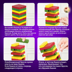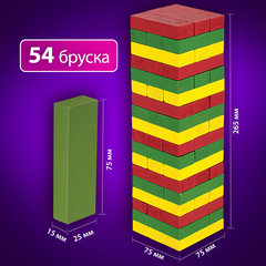 Игра настольная "ЦВЕТНАЯ БАШНЯ", 54 окрашенных деревянных блока + кубик, BRAUBERG HOBBY, 665493