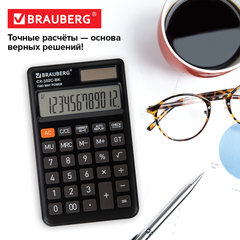 Калькулятор карманный BRAUBERG CX-102C-BK (76x126 мм), 12 разрядов, двойное питание, ЧЕРНЫЙ, 272647