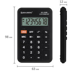 Калькулятор карманный BRAUBERG DC-210N (63х98 мм), 8 разрядов, черный, 272953