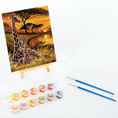 Краски укрывистые, быстро сохнут без потери цвета. Каждый цвет в наборе подходит под конкретный номер, благодаря чему нет необходимости смешивать краски. Однако, если Вы хотите добиться нового оттенка, наши краски с легкостью позволят это сделать, благодаря отличной смешиваемости. 2 синтетические кисти разного размера идеально подойдут для закрашивания элементов различной сложности. Холст из 100% хлопка плотностью 290 г/м2 с высококачественной печатью и отличным натяжением. Небольшой деревянный мольберт можно использовать как в процессе работы, так и в качестве оригинальной подставки для готовой картины. Для лучшего перекрытия контура основы и достижения большей контастности рекомендуем класть краску в 2-3 слоя, после того, как высохнет предыдущий.