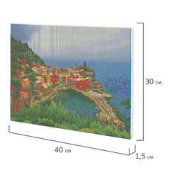 Товар высокого качества с детально проработанной схемой и надёжным клеевым слоем, но при этом относится к среднему ценовому сегменту. Количество картин: 1 шт., Тип выкладки: полная выкладка, Сюжет: Прибрежный городок, Количество цветов: 45, Уровень сложности: 4 из 5, Комплектация: алмазная мозаика, Серия: Алмазная мозаика 30х40 см, Основа картины: холст на подрамнике, Возрастное ограничение от: 6 лет, Пол: универсальный, Длина: 30 см, Ширина: 40 см. Код: 662421