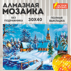 Картина стразами (алмазная мозаика) 30х40 см, ОСТРОВ СОКРОВИЩ "Зимний пейзаж", без подрамника, 662408