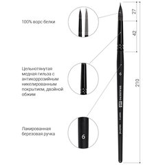 Кисть художественная проф. BRAUBERG ART CLASSIC, белка, круглая, № 6, 200912