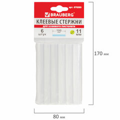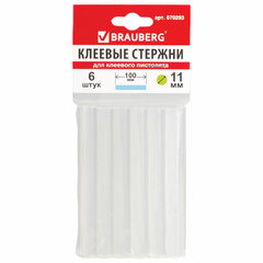 Клеевые стержни, диаметр 11 мм, длина 100 мм, прозрачные, комплект 6 шт., BRAUBERG, европодвес, 670293