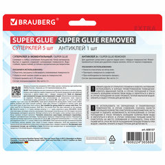 Клей моментальный Суперклей 5 шт. по 3 г + "Антиклей" в подарок, BRAUBERG EXTRA, 608107