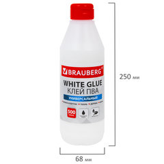 Клей ПВА BRAUBERG, 0,5 кг, универсальный (бумага, картон, дерево), 600982