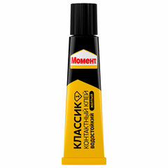 Клей Момент-1 является водостойким и предназначен для склеивания дерева, металла, кожи, резины, войлока, декоративно-слоистых пластиков, стекла, керамики, фарфора. Клеевой шов получается очень надежным.Нельзя использовать для посуды, контактирующей с пищей. Необходимо хранить при температуре от -20ºС до +30ºС. Если клей замерз, то свои свойства он восстановит при комнатной температуре. Поставляется в шоу-боксе.