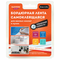 Клейкая лента бордюрная для ванны и кухни повышенной клейкости 38 мм х 3,35 м, бутил, DASWERK (ДАСВЕРК), 608774