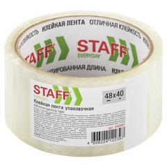 Клейкая лента упаковочная 48 мм x 40 м, прозрачная, толщина 40 микрон, STAFF, 440087