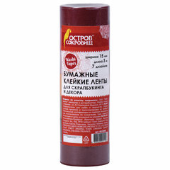 Бумажные клейкие ленты ОСТРОВ СОКРОВИЩ подходят для использования в скрапбукинге, декорирования поделок, открыток, оформления подарков. Декоративные ленты легко приклеиваются и надежно фиксируются на любой поверхности, придавая изделиям оригинальный вид.В наборе содержится 7 бумажных лент различных цветов на полупрозрачной клеевой основе, каждая из которых намотана на пластиковую втулку. Ширина ленты 15 мм позволяет наклеить её даже на небольшие поделки, а длина 3 м даёт большой простор для творчества.