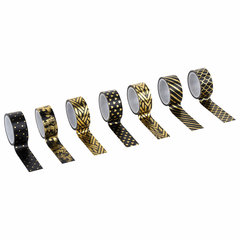 Товар относится к среднему ценовому сегменту. Ширина ленты: 15 мм, Длина намотки: 3 м, Количество в упаковке: 7 шт., Количество дизайнов в упаковке: 7 шт., Тон: Черное золото, Тип клейкой ленты: декоративная, Серия: Фольгированные, Цвет: черный, золотистый, Основа: бумага, Упаковка: термоусадочная пленка. Код: 661714