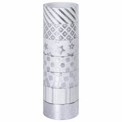 Товар относится к среднему ценовому сегменту. Ширина ленты: 15 мм, Длина намотки: 3 м, Количество в упаковке: 7 шт., Количество дизайнов в упаковке: 7 шт., Тон: Серебристый, Тип клейкой ленты: декоративная, Серия: Фольгированные, Цвет: белый, серебристый, Основа: бумага, Упаковка: термоусадочная пленка. Код: 661713