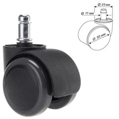 Колеса (ролики) BRABIX для кресла, прорезиненные, КОМПЛЕКТ 5 шт., шток d11 мм, черные, в коробе, 532009