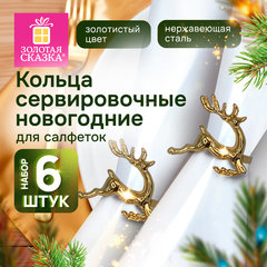 Кольца для салфеток новогодние, КОМПЛЕКТ 6 шт., 5,5 см, "Олени", золотистые, ЗОЛОТАЯ СКАЗКА, 592487